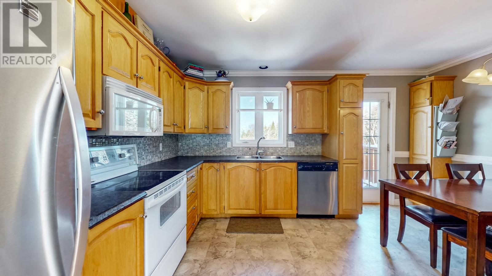 Welcome to beautiful, sunny CBS! Ideally located just two minutes from Peacekeepers Way and close to daycares, recreation, and walking trails, this lovely home offers stunning ocean views over Conception Bay and the most amazing sunsets. The main level features hardwood floors, crown mouldings and a large, bright living room with a beautiful bay window, creating a warm and inviting space. The spacious eat-in kitchen offers loads of cabinet space, a stylish tile backsplash, and plenty of room for entertaining or family meals — all while enjoying gorgeous views. There’s also easy potential to open the kitchen to the living room without sacrificing cabinet space or functionality. The kitchen leads to a two-tier deck and quaint backyard, perfect for relaxing or hosting. On the main level, you’ll find two good size comfortable bedrooms and a fully renovated bathroom. A brand-new mini split installed last summer ensures efficient heating and cooling year-round. There is also a brand-new patio deck out front. The lower level is completely above grade, making it exceptionally bright. It features a large rec room, laundry room, half bath, and ample storage space. With its ground level entry as well as layout and brightness, it offers great potential for an in-law suite or additional living space. Outside, the backyard includes a good-sized shed and plenty of room to enjoy. Situated in a fabulous, family-friendly neighborhood, this home is perfect for a young family, working professionals, or someone looking to downsize. The home inspection is for the purchasers knowledge. As per the sellers directive there will be no conveyance of offers until Sunday April 12th at 5PM and all offers are to be left open until Sunday April 12th at 8PM (id:65620)