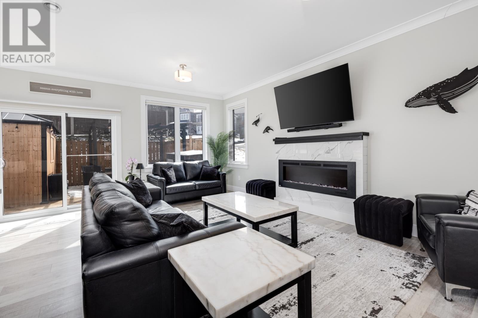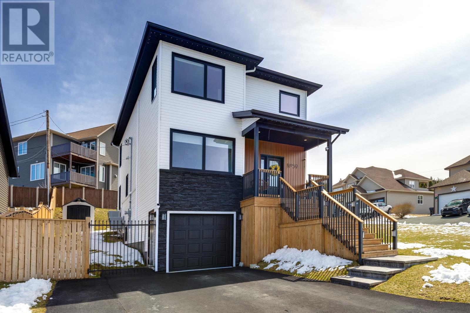 Welcome to 59 Atlantica Drive — where modern comfort meets coastal living. Situated on a desirable corner lot in the prestigious Island View Estates, this meticulously maintained, like-new two-storey home offers the perfect blend of style, functionality, and stunning views of Conception Bay. The bright and inviting main floor features 9-foot ceilings, oversized windows, and a contemporary open-concept layout filled with natural light. Quality flooring, ceramic tile, and custom millwork throughout elevate the space. The spacious living room flows seamlessly into a modern kitchen and dining area complete with stainless steel appliances and direct access to the backyard—ideal for entertaining. A versatile flex room and convenient half bath complete the main level. Upstairs, you’ll find three well-appointed bedrooms, including a spacious primary suite featuring a walk-in closet, full ensuite, and beautiful ocean views. A second full bathroom and dedicated laundry room provide everyday convenience for the growing family. The fully developed basement offers additional living space with a large family room, half bath, and attached garage, making it both functional and practical. Step outside to a fenced and private backyard, complete with storage shed, an enclosed hot tub and entertaining area—perfect for year-round enjoyment. Notable upgrades include: Fujitsu dual-head heat pump (main floor & primary bedroom) plus single-head unit in basement. Sinope WiFi thermostats for efficient remote climate control. Generator hookup with automatic transfer switch. Spectrum customizable exterior lighting. Located just 20 minutes from St. John’s, this stunning property shows exceptionally well and reflects true pride of ownership throughout. As per Seller’s Directive, there will be no conveyance of offers prior to 3:00 PM on Tuesday, May 5th. Offers to remain open until 8:00 PM the same day. (id:65620)