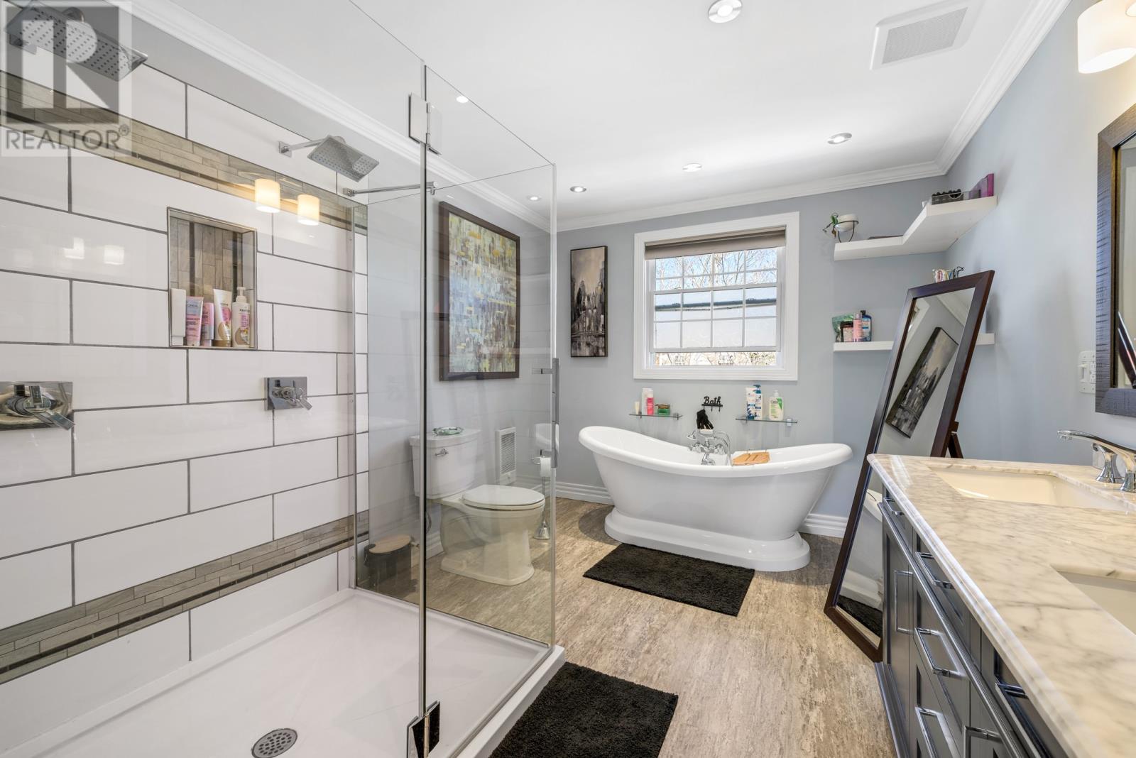 Welcome to 15 Stirling Crescent, a spacious four-level split in the sought-after neighbourhood of Spruce Meadows on St. John’s East End. Ideally situated on a quiet street next to Spruce Meadows Park and within walking distance to Macdonald Drive Elementary, Macdonald Drive Junior High, and St. Paul’s Junior High, and just a 5-minute drive to l’École des Grands-Vents and Vanier Elementary. With approximately 2,500 sq. ft. of living space, this home features a functional multi-level layout with room for everyone to spread out. The basement offers a rec room, crawl space, and laundry/storage area. The ground level includes a bedroom, separate TV/family room, and half bath. The main level features a bright kitchen and dining area open to the living room, creating a natural gathering space for everyday living and entertaining. Upstairs, you’ll find two additional bedrooms, a full main bath, and a spacious primary suite with walk-through closet and beautifully renovated ensuite featuring double sinks, a double shower, and freestanding tub. Additional highlights include mini-split with new condenser unit (2026) and electric baseboard heating, PEX plumbing, updated flooring and trim throughout the bedrooms and main floor, an updated rec room, semi-developed laundry room, and a ground-level deck perfect for summer BBQs. Set in a well-established East End neighbourhood known for its quiet streets, nearby schools, park access, and strong sense of community, this is a fantastic opportunity in one of the area’s most popular locations. As per the Sellers Directive, there will be no conveyance of any written offers prior to 5:00pm on Monday, April 20th, 2026 and all offers are to remain open for consideration until 10:00pm on April 20th, 2026. (id:65620)
